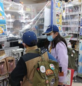 隊長の指示で梅小路公園までの間で“三角巾”をお買い物。みんなで使うものはみんなでそろえよう!