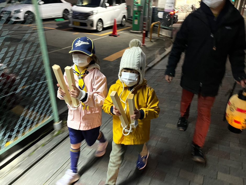 ホーム小学1年〜2年(ビーバー隊) 【ビーバー隊】火の用心 2022年12月25日2023年1月15日 SHARE ツイート シェア はてブ LINE Pocket さぁ、今年も残りあとわずかです! 47団、ビーバー隊では、毎年年末に火の用心の啓発の為に、提灯と拍子木を持って、夕方の白川通りを練り歩きます! まずは、啓発&宣伝のためのチラシに色を塗ります それをチョキチョキ切って、ミニカイロと一緒に袋に入れます カチン カチン 火の用心〜 とスカウト達の元気な声が街に響きます。