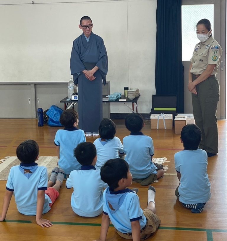 先生は裏千家のお作法をお話ししてくださったね。そして先生は福井県のお寺の住職さん。ボーイスカウトの先輩でもあったね。