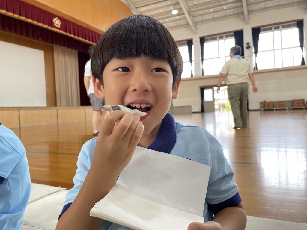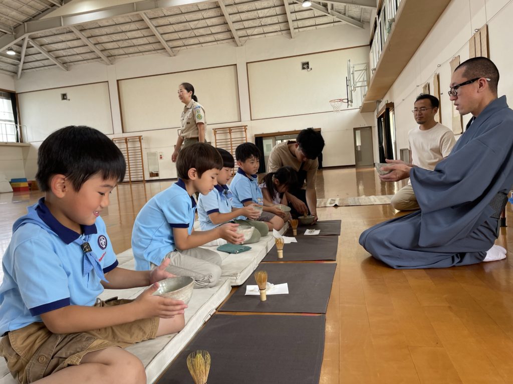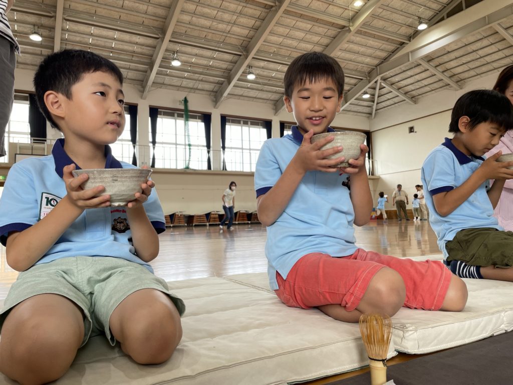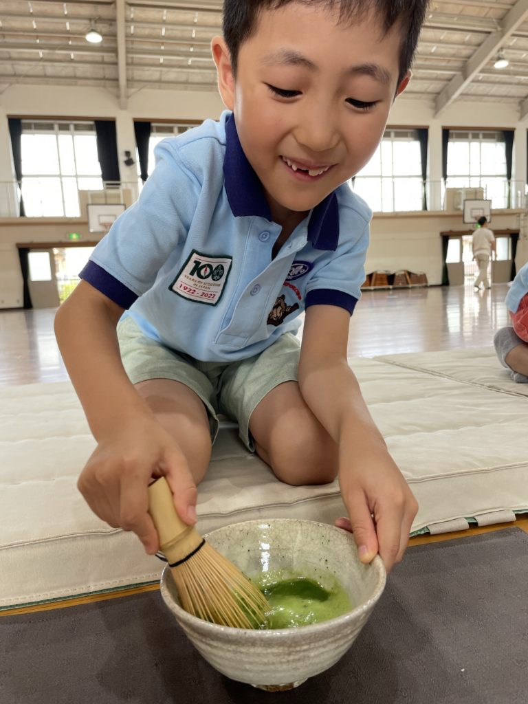 茶筅(ちゃせん)を使って自分でお茶を点てられたね。ちょっと苦いとの声もあったけど、みんな美味しくお茶碗がピカピカになるまで頂けたね。
