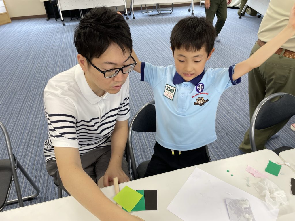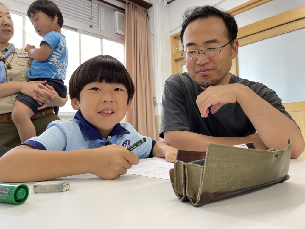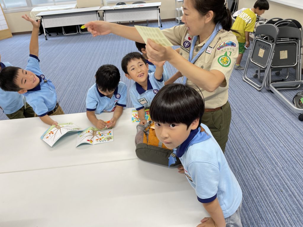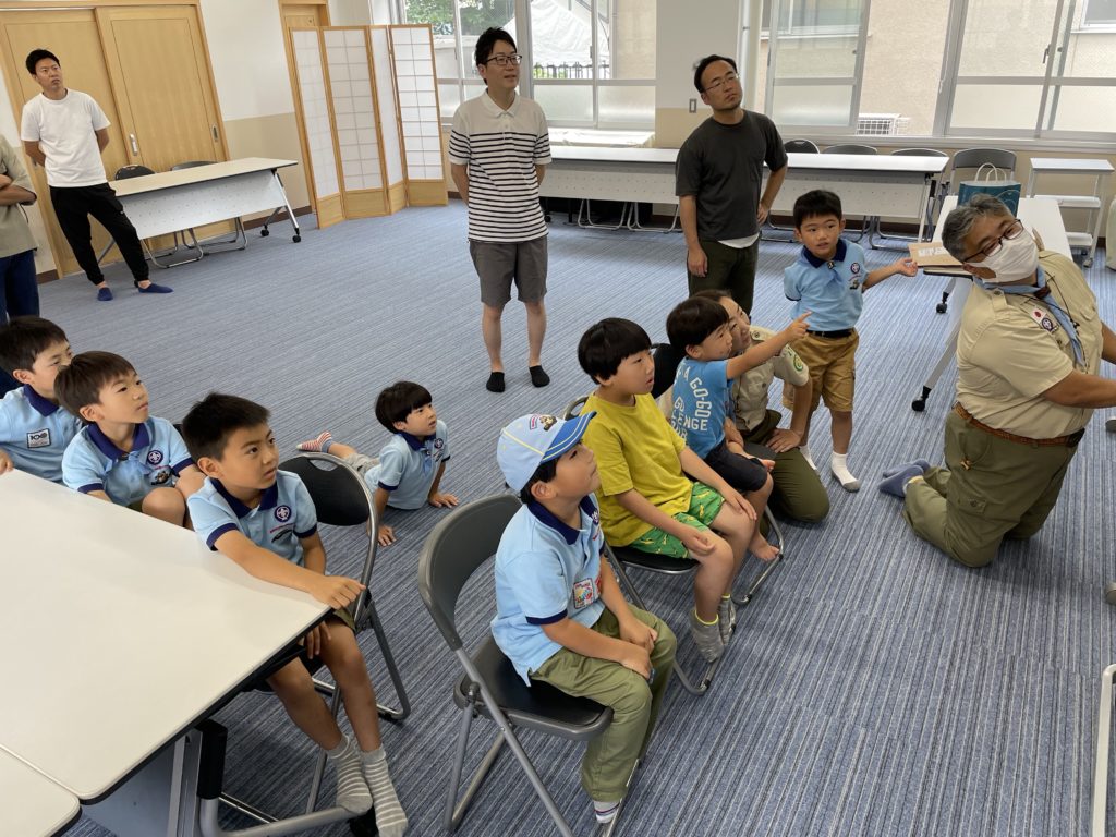 お隣りの建物で活動しているカブスカウトのお兄さんとお姉さんを少し見学させてもらおう。