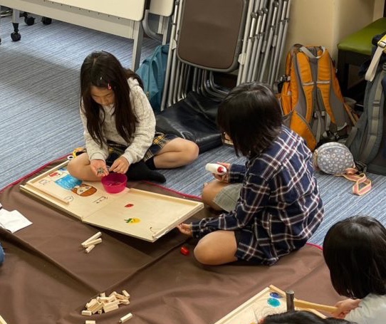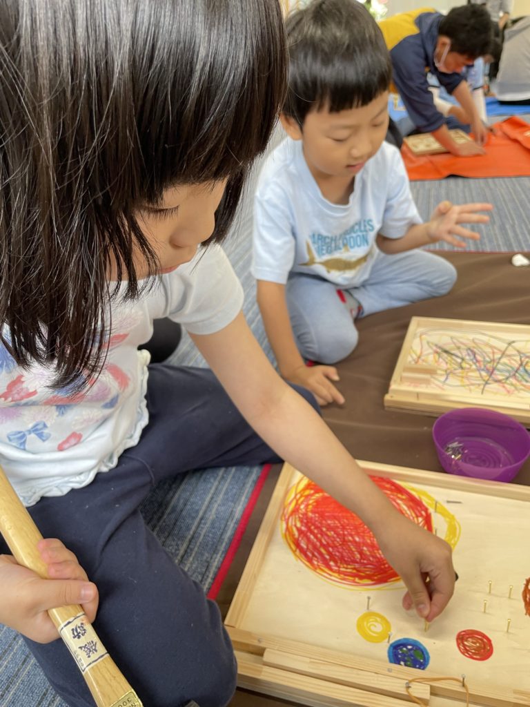お姉さんは2人で組み合わせた作品を考え中。