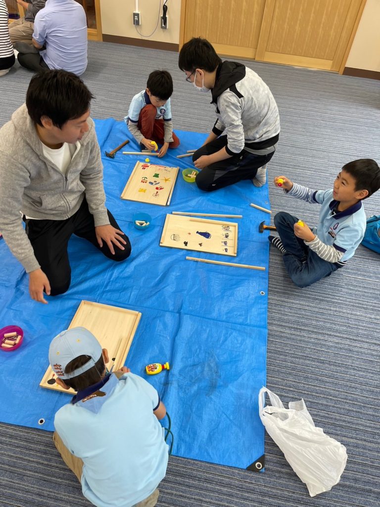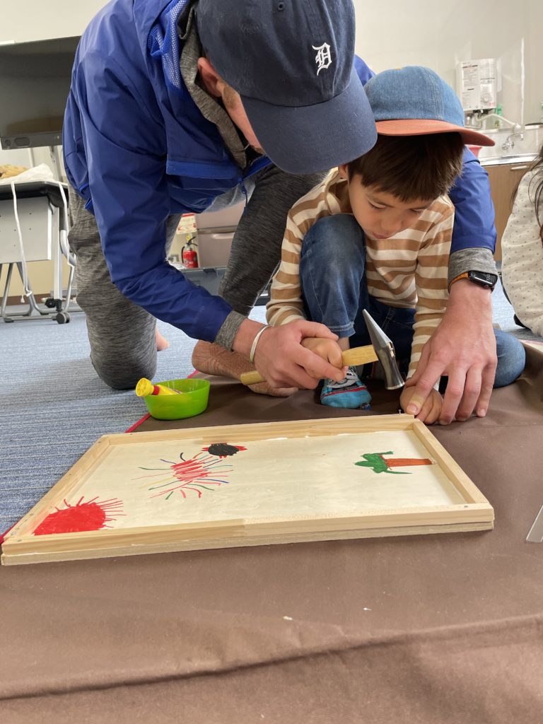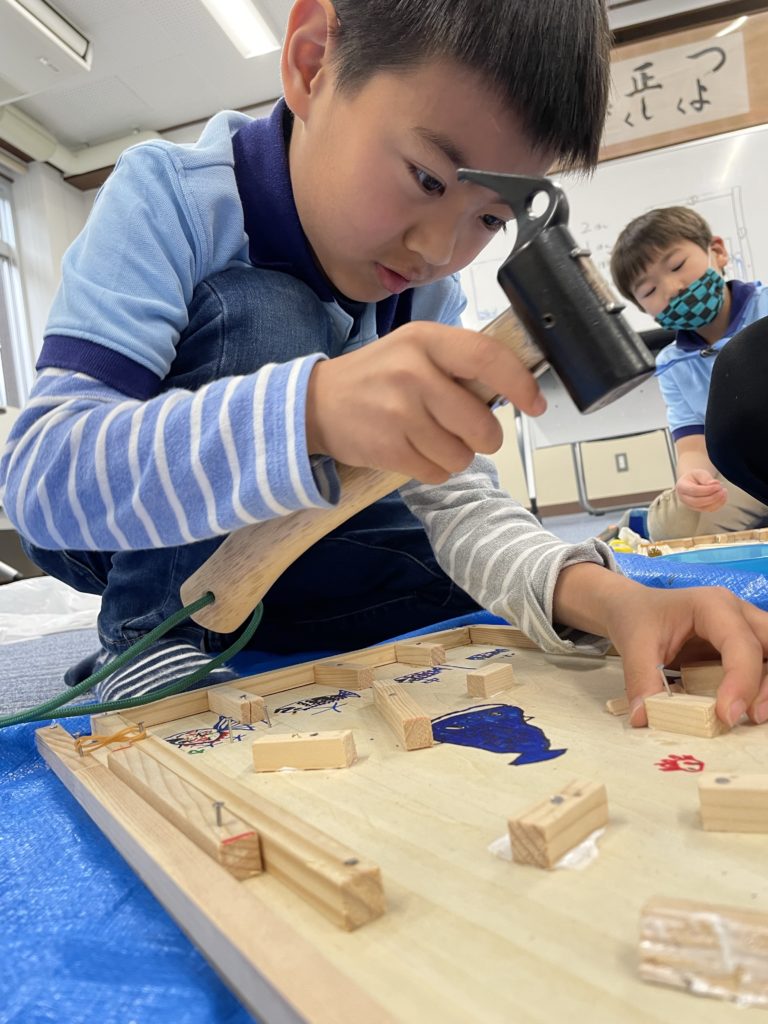 黙々と金づちこんこん。工作に夢中だったね。